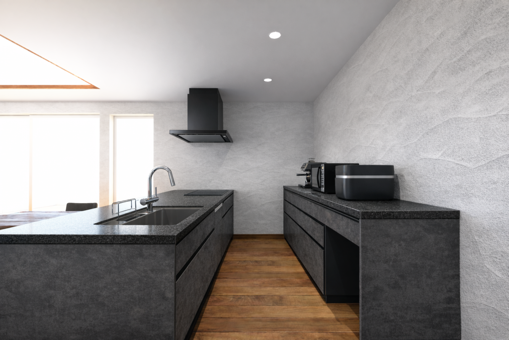 使いやすさにこだわったキッチンは、広い作業スペースで調理もスムーズ。